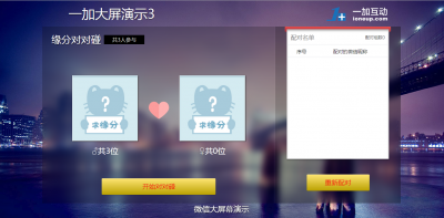 微信大屏幕(微现场)是将微信与PC大屏完美结合,主要包括签到墙,信息墙,抽奖,配对,投票,摇一摇赛跑,激情60秒计时器,竞选桌长等环节,适用于各类聚会、会议、路演、婚礼、年会、聚餐等等,能最大化调动现场观众,提升现场气氛,嗨暴全场!是目前非常火爆的微信现场营销互动产品。完美兼容weiphp2.0/3.0